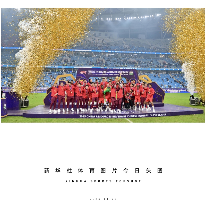 11月22日,上海海港队在颁奖仪式上庆祝夺冠。\n 当日,在辽宁大连举行的2025赛季中国足球协会超级联赛第30轮比赛中,上海海港队客场1比0战胜大连英博海发队,获得本赛季中超联赛冠军。\n 新华社记者 吴青昊 摄