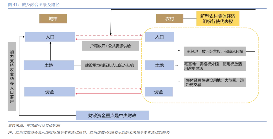 五是以户籍制度改革为抓手推动城乡融合。全面放开放宽城市落户门槛,探索在同等级城市规模以及不同城市等级规模的特大超大城市之间推行落户积分互认以降低落户门槛。切实推动实行居住证制度,将户籍制度的目标回归人口统计,不再以户籍身份为依据提供教育、医疗、社保等公共资源。在便利居住证制度的基础上以居住证为基础提供公共服务以让进城落户农民工在城市生活的更好。切实推动公共服务供给与户籍身份剥离,使未落户常住人口享有均等化城镇基本公共服务。推动城乡要素平等交换、双向流动,促进要素更多向乡村流动,增强农业农村发展活力。