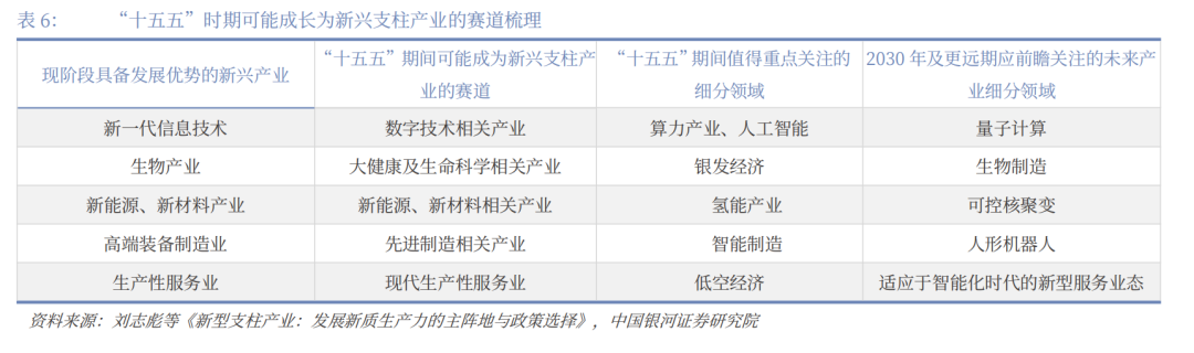 打造一批新兴支柱产业。在加快发展新质生产力的新时期,新兴支柱产业是构筑产业未来发展新赛道新优势的主阵地。2024年4月,习近平总书记在重庆考察并主持召开新时代推动西部大开发座谈会时深刻指出,“支柱产业是发展新质生产力的主阵地”。2025年4月政治局会议强调,要培育壮大新质生产力,打造一批新兴支柱产业。这是中央首次提出“打造一批新兴支柱产业”。“十五五”时期,要从产业链政策、市场政策、科技政策、人才政策和投融资政策等方面进行系统性部署,加快发展新质生产力,打造一批新兴支柱产业,如商业航天、低空经济、深海科技等。