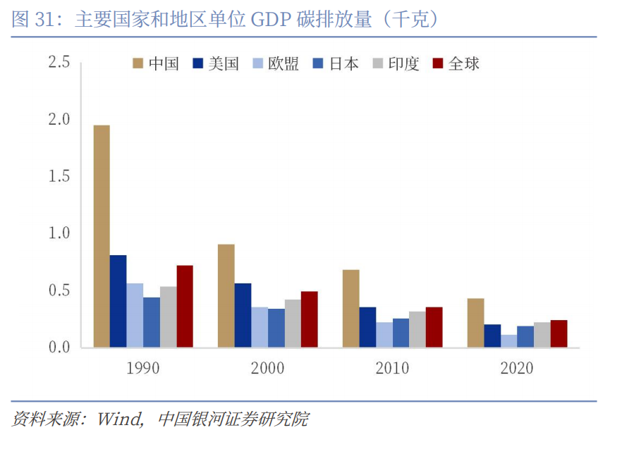 第一,绿色生态相关指标还有较大改善空间。其一,单位 GDP 能耗降低不及预期。“十四五”规划纲要规定单位 GDP 能耗累计要下降 13.5%,但截至 2024 年累计下降约 3.5%。为完成“十四五”规划目标,2025 年需要完成 10.67%左右的目标降幅,这一目标大幅高于 2025 年《政府工作报告》单位 GDP 能耗降低 3%左右的目标,因此单位 GDP 能耗要完成“十四五”规划任务要求还需努力。其二,单位 GDP 二氧化碳排放离规划目标还有较大距离。“十四五”规划纲要规定单位GDP 二氧化碳排放累计要下降 18%,但截至 2024 年累计下降 6.7%,“十四五”要完成单位 GDP二氧化碳排放目标,还有一定距离。