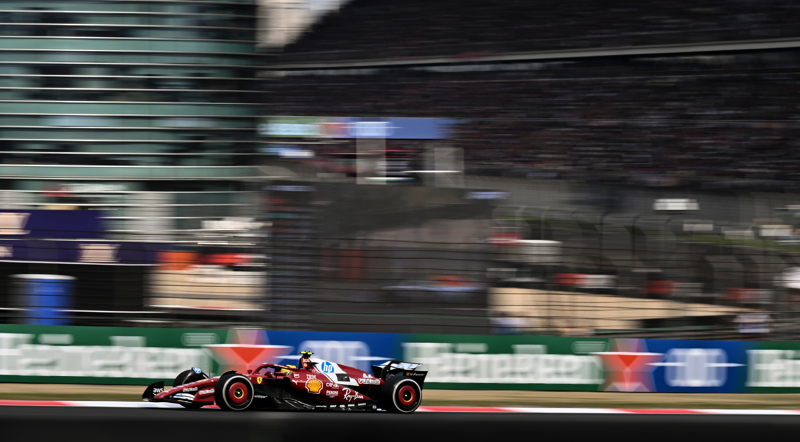 新华社照片,上海,2025年3月23日\n 3月23日,法拉利车队英国车手汉密尔顿在比赛中。\n 当日,F1中国大奖赛正赛在上海国际赛车场举行。经过56圈的角逐,杆位发车的迈凯伦车队澳大利亚车手皮亚斯特里率先冲过终点,夺得职业生涯首个中国大奖赛冠军。迈凯伦车队英国车手诺里斯获亚军,梅赛德斯车队英国车手拉塞尔获季军。\n 新华社记者 夏一方 摄