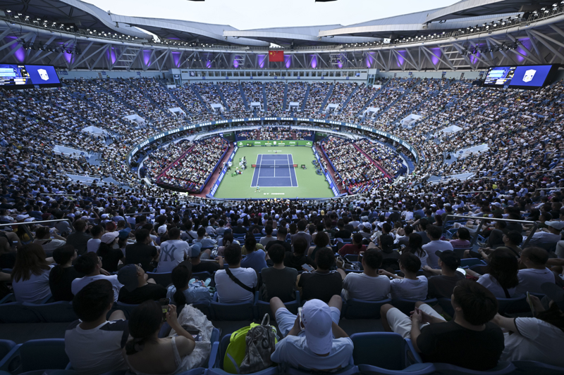 新华社照片,上海,2025年10月12日\n 这是10月12日拍摄的男单决赛现场。\n 当日,在2025年ATP上海网球大师赛男子单打决赛中,摩纳哥选手瓦舍罗2比1战胜法国选手兰德克内什,夺得冠军。\n 新华社记者 陈浩明 摄