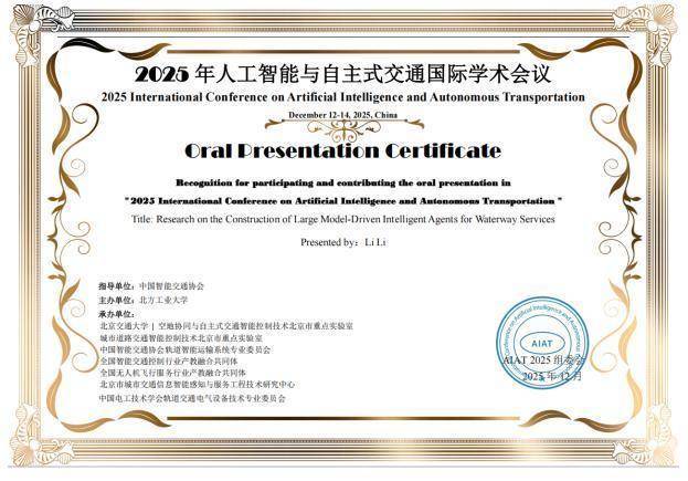 2025年12月12日至14日,人工智能与自主式交通国际学术会议(AIAT2025)在北京举行。长江航道测量中心宣讲的关于航道数字孪生与大模型智能体的两篇论文,受到与会国内外专家的高度关注。